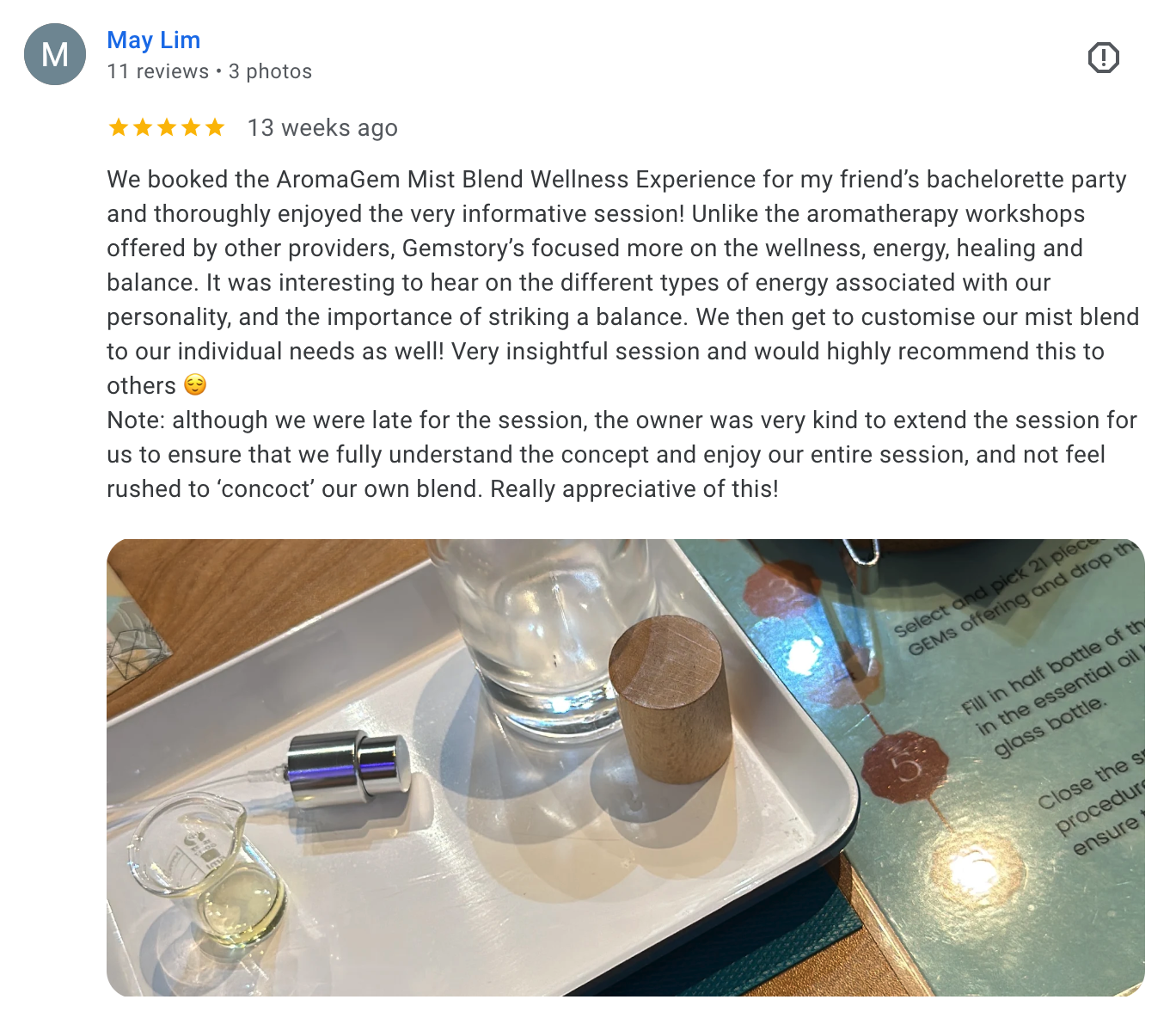 All Aromagems are hand-blended and energetically charged in Singapore by our Gemstory wellness team with love, mindfulness, and care.